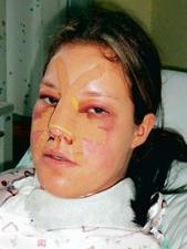 Ein Verband verdeckt die drei Zentimeter lange Wunde auf der Nase, die Augen sind blutunterlaufen, das Gesicht übel geschwollen.