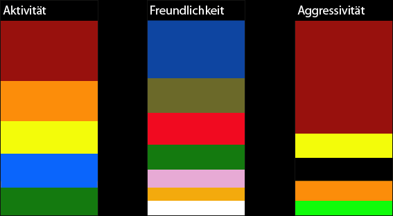 Wie wirken also Farben als emotionales Ausdrucksmittel? In Umfragen wurden unterschiedliche Farbkombinationen mit Eigenschaften und Gefühlen in Verbindung gesetzt.